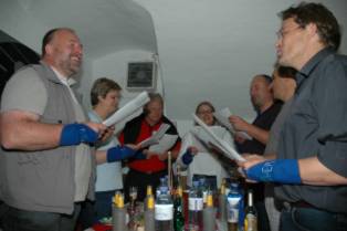 Vorsichtiges Ansingen der Bruderschaftshymne (... ja, weil miar T-11-er